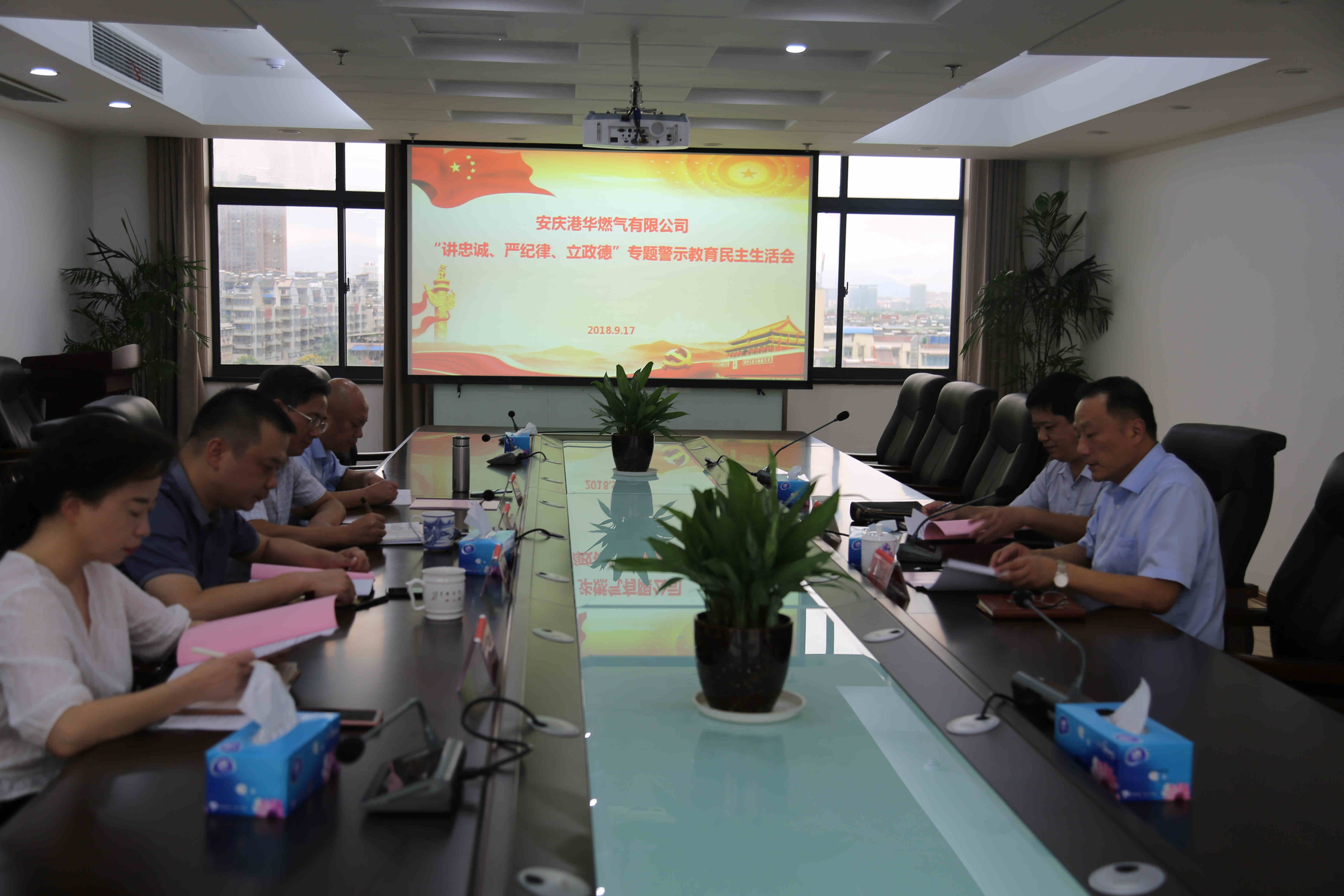 9月17日,安慶港華燃氣有限公司黨委召開“講忠誠、嚴紀律、立政德”專題警示教育民主生活會。市城管局黨委委員、副局長姚志蒞會指導,公司黨委書記、董事長何族興主持會議。