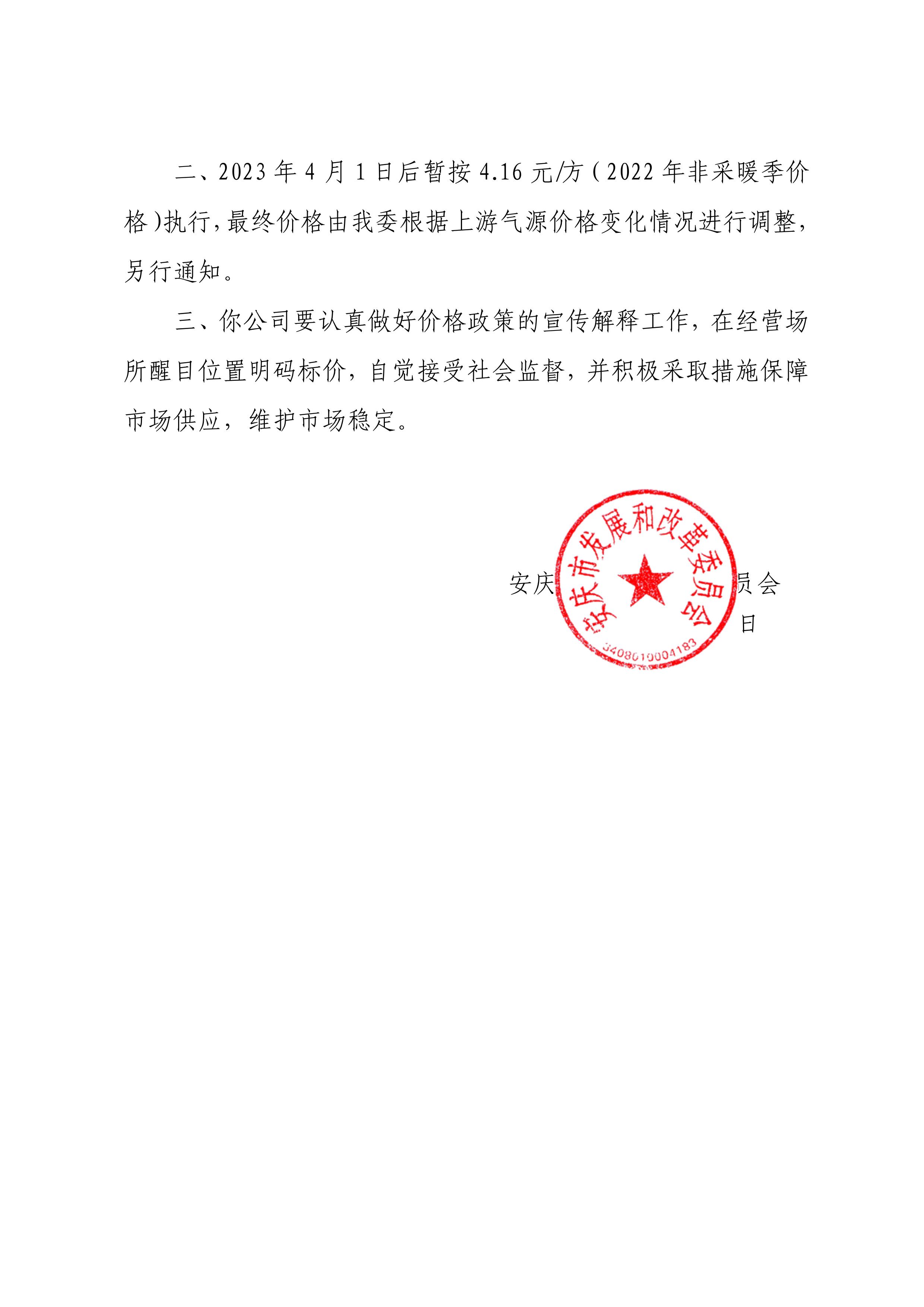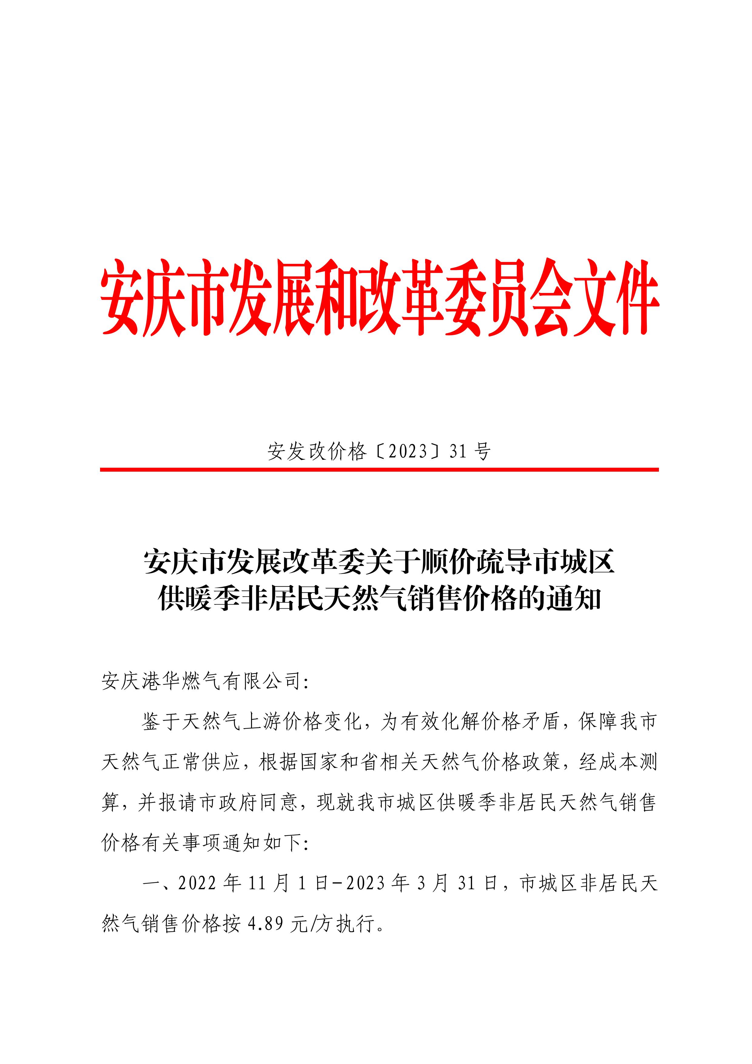 關(guān)于順價疏導(dǎo)市城區(qū)供暖季非居民天然氣銷售價格的通知
