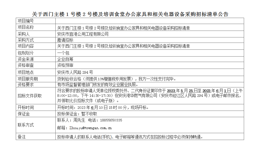 關(guān)于西門主樓1號(hào)樓2號(hào)樓及培訓(xùn)食堂辦公家具和相關(guān)電器設(shè)備采購(gòu)招標(biāo)清單公告