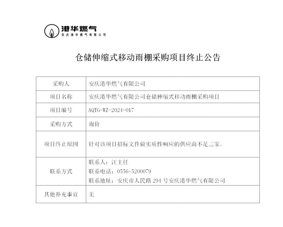 安慶港華燃?xì)庥邢薰居布阑饓?xiàng)目詢價(jià)結(jié)...