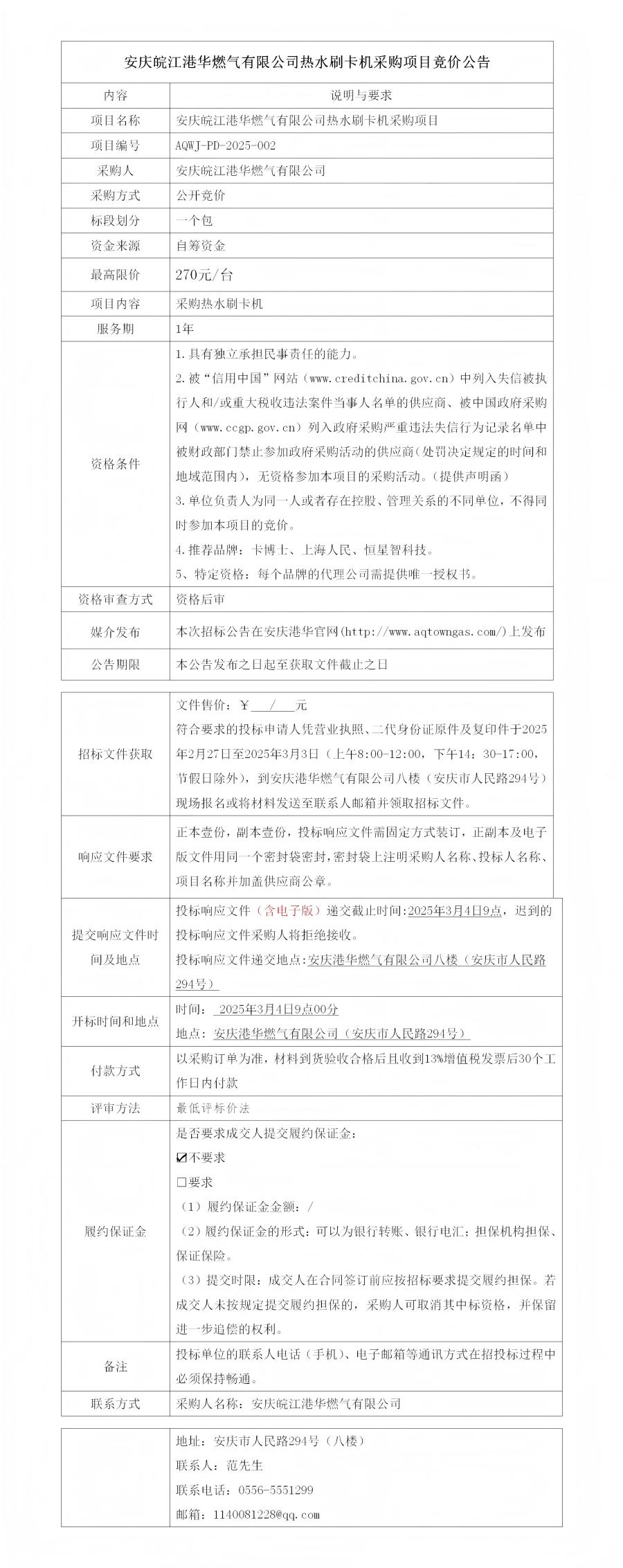 安慶皖江港華燃?xì)庥邢薰緹崴⒖C(jī)采購(gòu)項(xiàng)目競(jìng)價(jià)公告