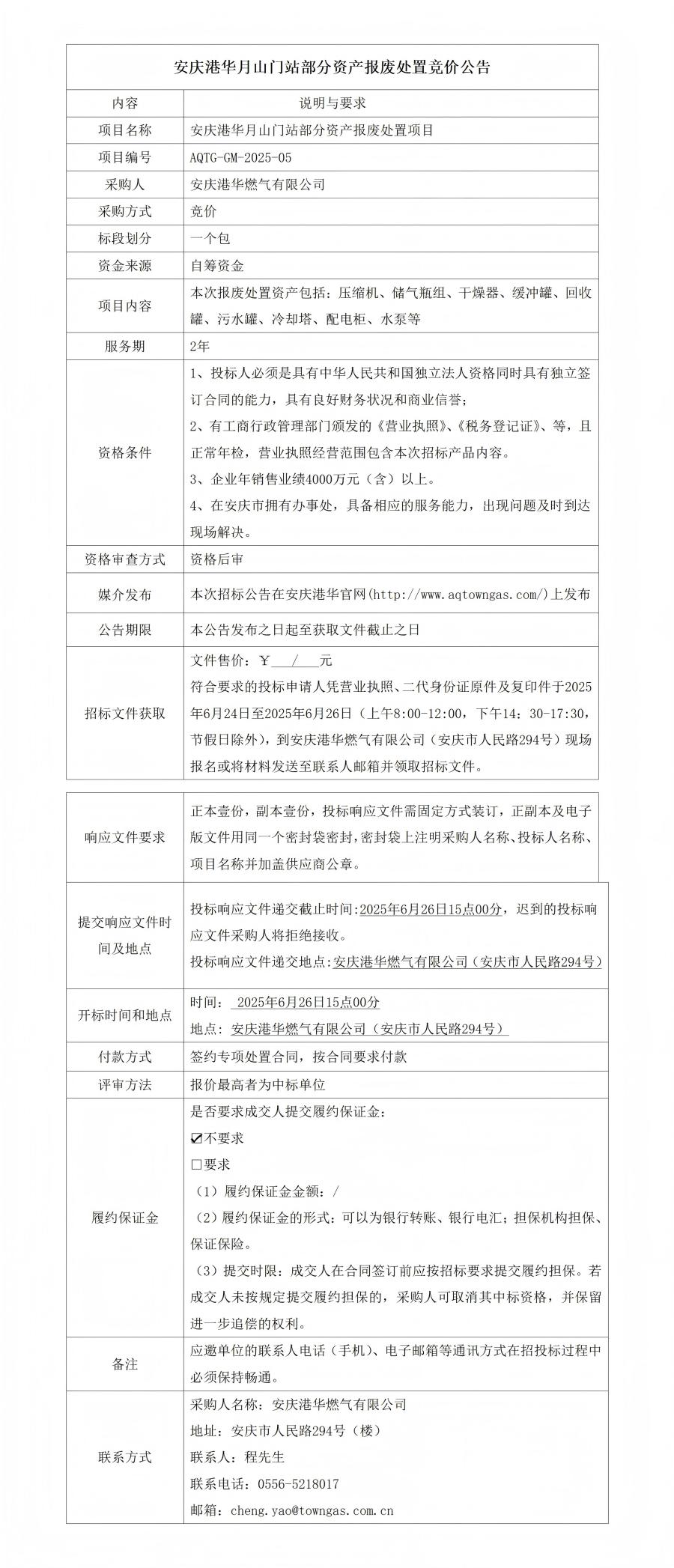 安慶港華月山門站部分資產(chǎn)報廢處置競價公告