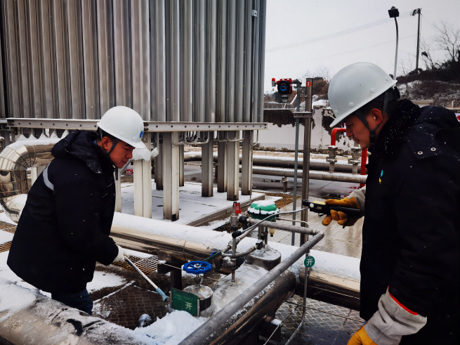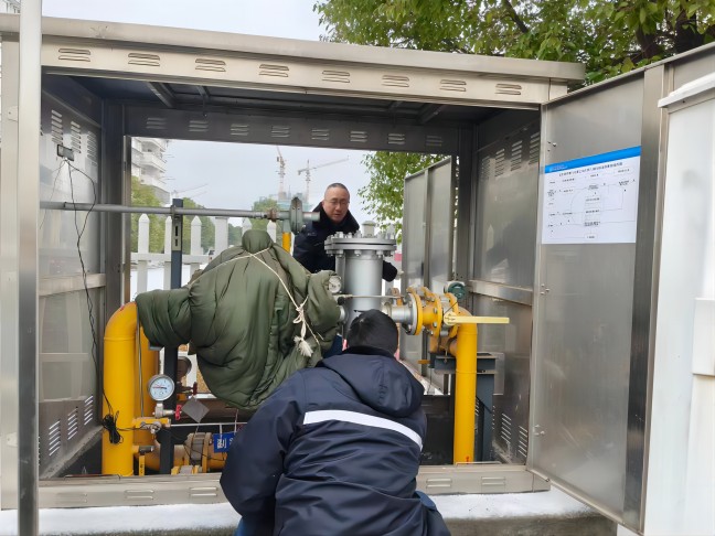 保障輸配勤維護。為保障低溫雨雪天氣下全市生產(chǎn)生活穩(wěn)定用氣,場站運行工高頻次檢查各重要設備運行情況,細致排查安全問題,一絲不茍確保關鍵環(huán)節(jié)處于良好運行狀態(tài);巡線探漏人員頂風冒雪,重點加大了人員密集區(qū)域及民生保障關鍵點的燃氣管網(wǎng)巡查探漏,并對易受低溫影響的管道、閥井、調(diào)壓設備及時采取包裹棉被、排水等防凍措施。